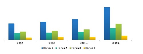 Figure 46 Asia-Oceania to be the Fastest Growing Simultan eous Ignition System Market Through 2014-2019 ($Million)