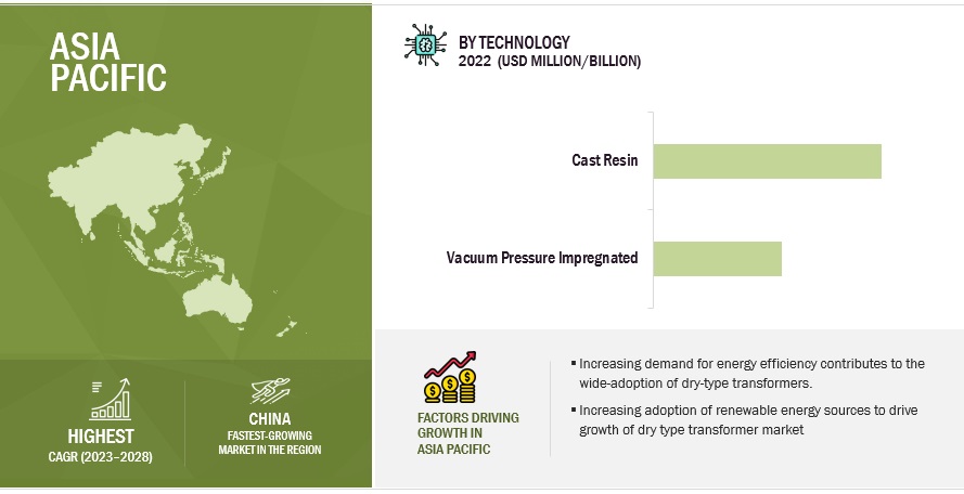 Asia Pacific is expected to be the largest dry-type transformer market during the forecast period, driven by rapid industrialization, urban development, and large-scale investments in power infrastructure across key countries such as China, India, Japan, and South Korea. The region’s growing electricity demand, fueled by rising populations, increasing adoption of electric vehicles, renewable energy integration, and expanding commercial and residential infrastructure, has led to a surge in the need for safe, efficient, and compact power distribution systems. Dry-type transformers, with their oil-free, fire-resistant, and low-maintenance characteristics, are increasingly favored for deployment in high-rise buildings, transport hubs, hospitals, and solar and wind power plants.