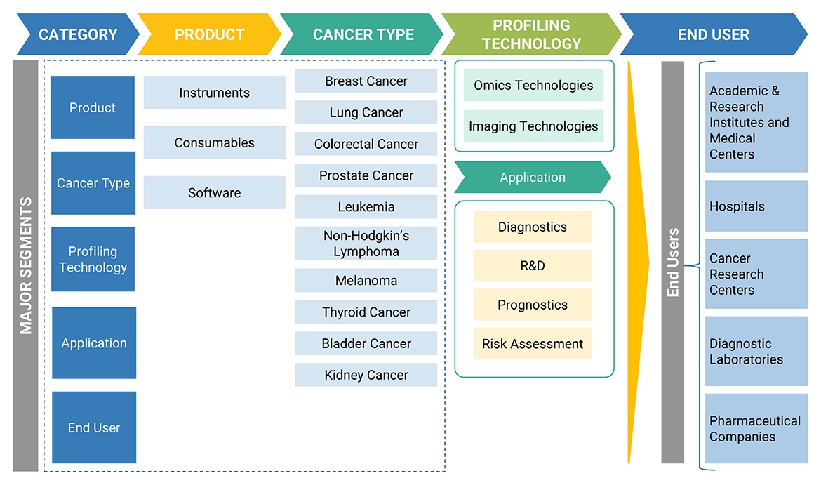 To define, describe, segment, and forecast the global cancer biomarker market by profiling technology, cancer type, product type, application, enduser, and region.