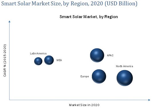[144 Pages Report] The smart solar market is estimated to grow from USD 6.47 Billion in 2015 to USD 13.26 Billion by 2020, at a Compound Annual Growth Rate (CAGR) of 15.4% during the forecast period.