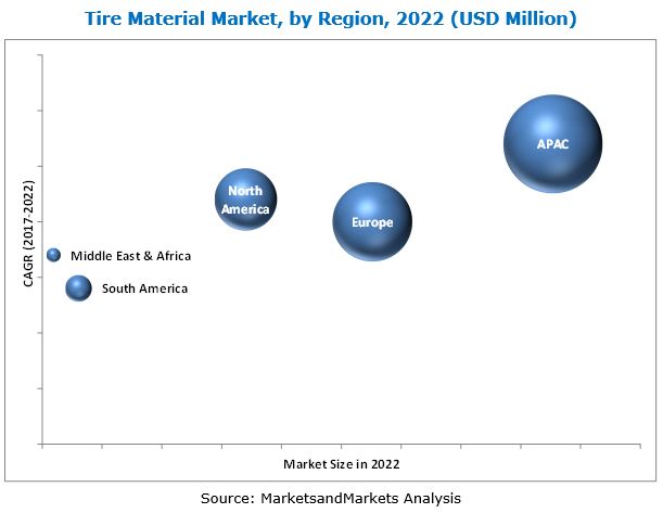 The global market size for tire material was USD 73.93 Billion in 2017 and is projected to reach USD 91.23 Billion by 2022, at a CAGR of 4.3% between 2017 and 2022.