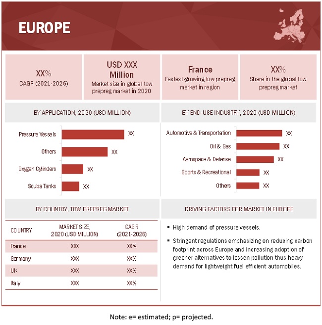 BY REGIONEurope was the largest market of tow prepreg in 2023. The increasing demand for tow prepreg in the automotive & transportation industry is a major driver of the market in Europe.
