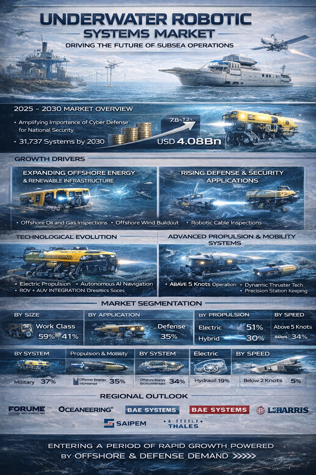 The shift toward integrated, scalable, and data driven robotic systems will enhance mission efficiency and reduce operational risks. As subsea operations grow more complex, underwater robotic systems will remain essential for ensuring safety, reliability, and productivity across commercial and defense applications.